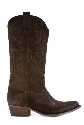High Texan Mud Brown Anged Suede Embroidery